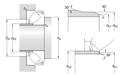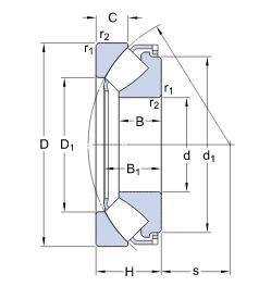 SKF球面滚子推力轴承拥有特殊设计的滚道和不对称滚子。 SKF轴承可以承受沿一个方向作用的轴向载荷和同时作用的径向载荷。 载荷在滚道之间通过与SKF轴承轴线成一定角度的滚子传递,而挡边引导滚子。