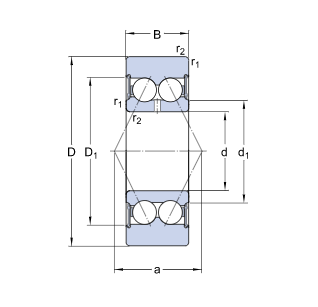 - 双列滚动体SKF滚轮轴承轴承是基于 32 系列的双列角接触球轴承