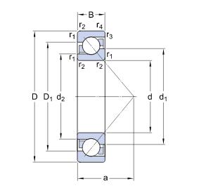 SKF角接触球轴承的内、外圈滚道在轴承轴线方向上有相对位移。 这意味着SKF角接触球轴承的这种轴承圈是设计用来承载联合载荷,即径向载荷和轴向载荷。SKF角接触球轴承的轴向承载能力随着接触角的增加而增加。